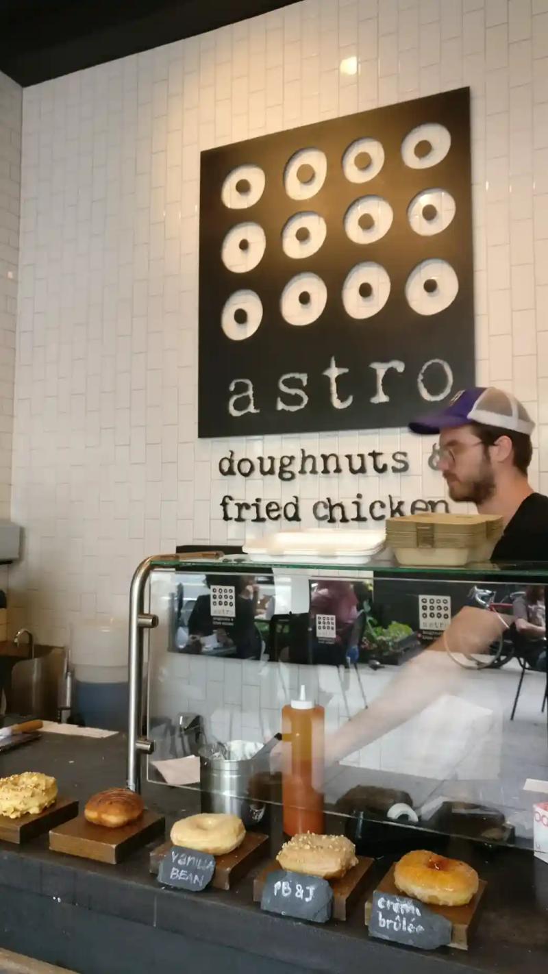 We always enjoy the fried chicken at Astro. They also have a variety of donuts with interesting flavor combinations, with the Maple Bacon and Key Lime Pie donuts being our favorites. While some donuts weren't as impressive, we had a positive experience overall. We recommend ordering donuts online as they tend to sell out. A minor drawback was the cleanliness, which could be improved.